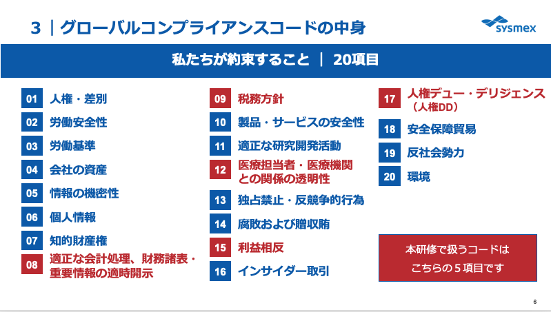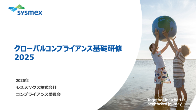 シスメックス株式会社は、検体検査に関わる機器・試薬・ソフトウェアの研究開発から製造、販売・サービス、サポートまでを一貫して手がけるヘルスケア企業です。グローバルに事業を展開する中で、自社グローバルコンプライアンスコードの周知徹底やコンプライアンス意識の向上を目的に、毎年1回、グループ全従業員に対するコンプライアンス教育をオンラインで実施しています。