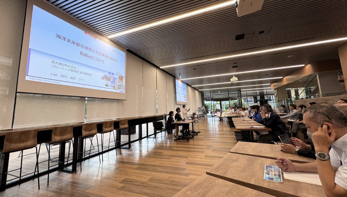ビジョンを掲げる企業とのコラボレーションイベントも企画・運営。第一回では清水建設株式会社にご参加いただき、水上都市の実現に向けた実際の活動についてご講演いただきました。このご縁をきっかけに、清水建設が静岡県・浜名湖で実施していた実証実験の視察ツアーも実現。ビジョンを起点とした共創の輪が広がっています。