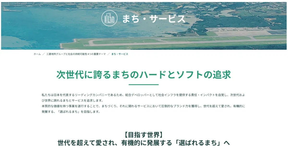 三菱地所として大事にしたい価値観をワーディングに落とし込みながら、4つの重要テーマをコピーライティングしました。またそれらの解説文を作成。それぞれに対して、自分たちの価値観と目指す世界を明確にしながら、三菱地所グループらしさが表現されるようなテキスト制作を心がけました。